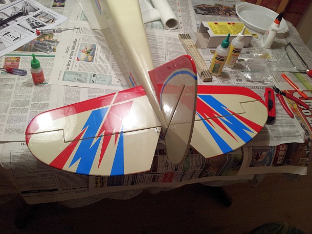 3. Schritt: Das Höhen- und Seitenleitwerk sowie das Fahrwerk habe ich laut Anleitung montiert.