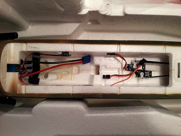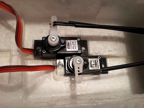 gelegt und die Servos sind in gleicher Richtung in die Flächen