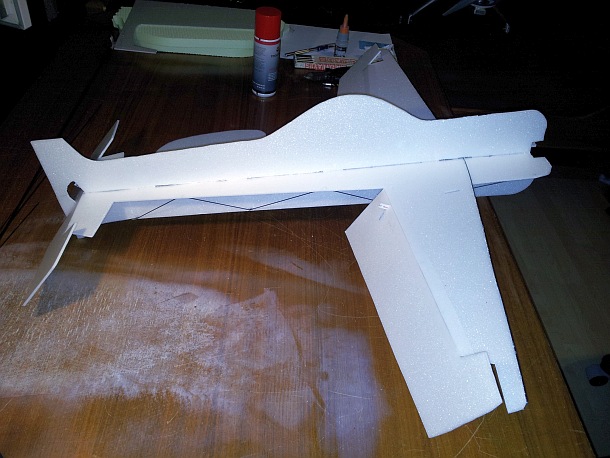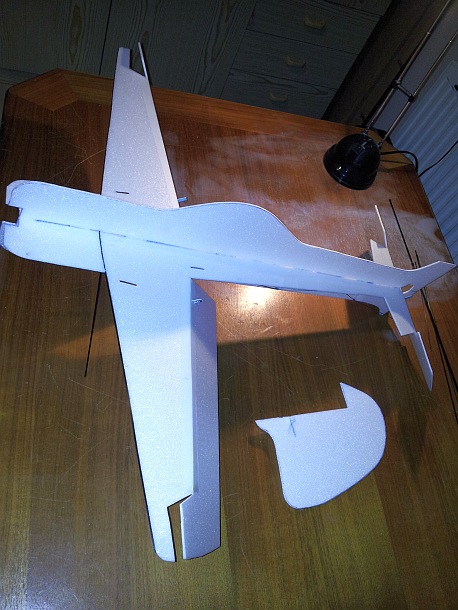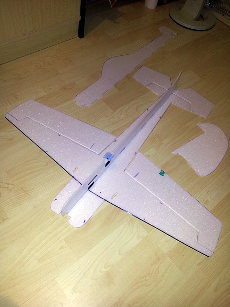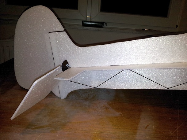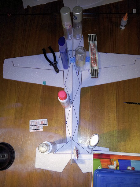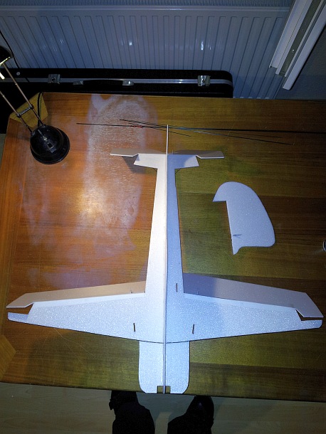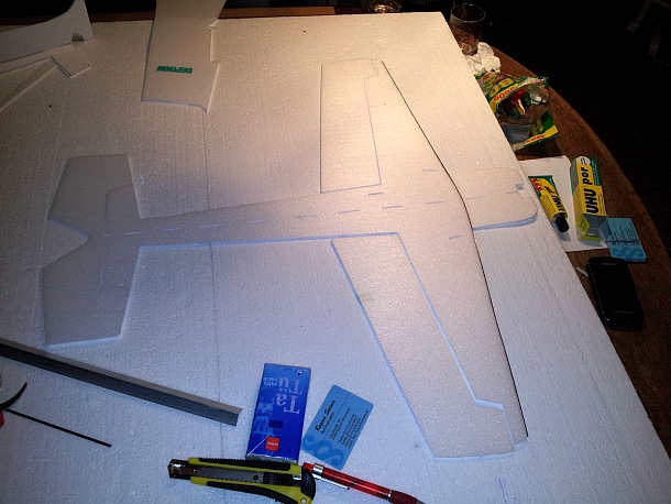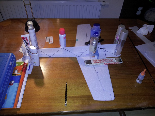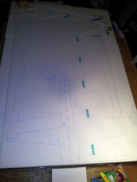 auf Depron 3mm Platte mit Tesa fixiert und die Umrisse nachgezeichnet. |