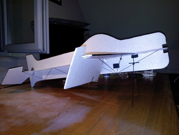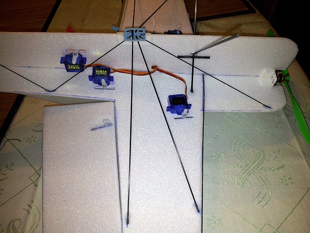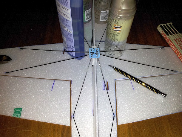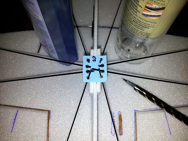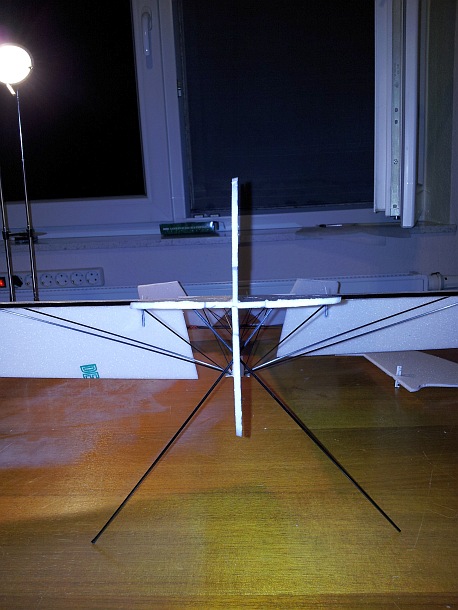 Als Verstrebungen dienen 1mm Kohlefaserstäbe