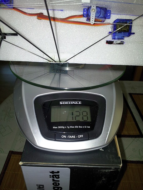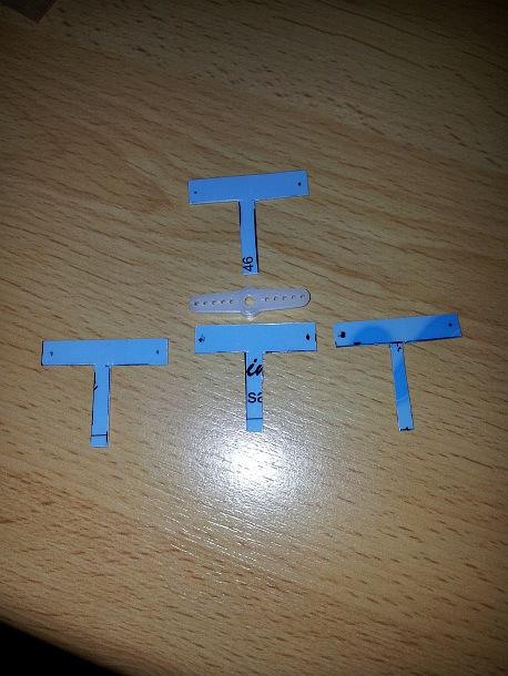 5g Servos mit Uho por angeklebt (vorher Funktionstest, Neutralstellung