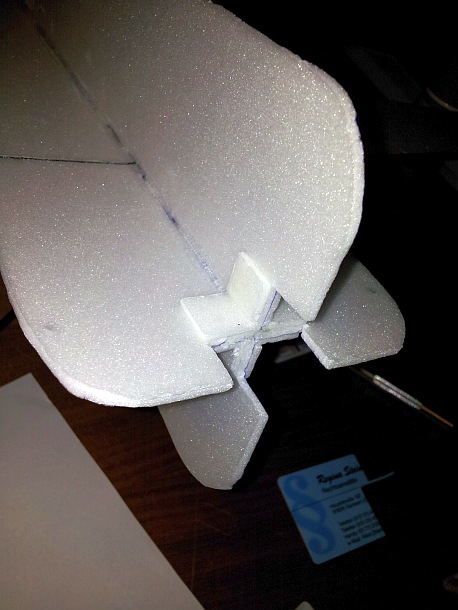 Mit Depron etwas auffüttern um hier den Motorspant aufkleben zu können. |
