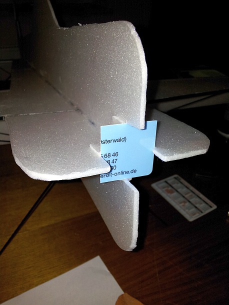 Der Motorspant wird auch aus einer Plastik Visitenkarte geschnitten. |