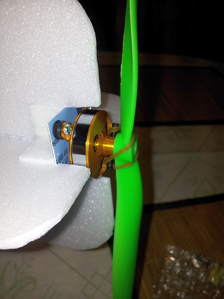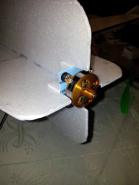 Den Motor habe ich mit selbstschneidende Schrauben und Servogummi